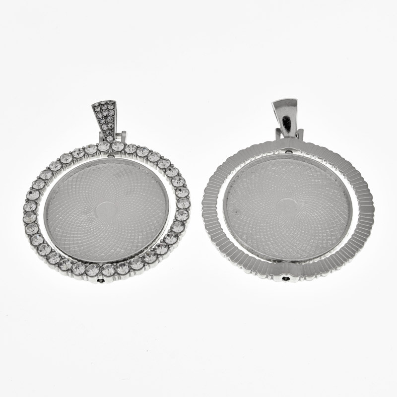 Основа кругла зі стразами, 43х34 мм, 25 мм, Світле срібло, (OSN-059439)