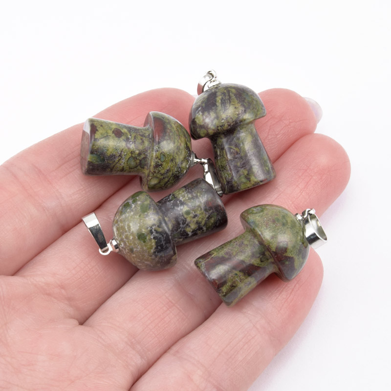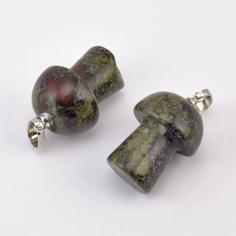 Підвіски відрізняються одна від одної забарвленням.Підвіска Грибочок, Натур. камінь Яшма Кров дракона, 25х15 мм (POD-058599) / 1 штPOD-05859987.00₴ / шт -