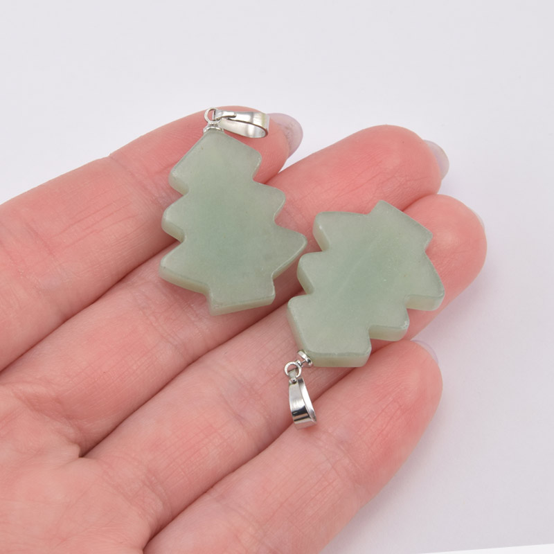 Підвіска Ялинка, Натур. камінь Авантюрин зелений, 27х20 мм (POD-058596)