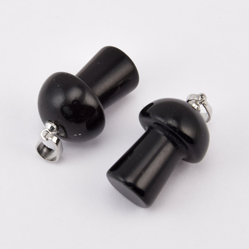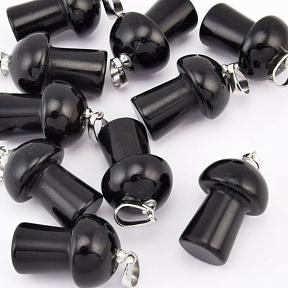 Підвіска Грибочок, Натур. камінь Обсидіан чорний, 25х15 мм (POD-058597)
