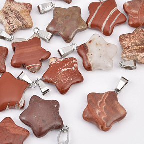 Підвіска Зірка, Натур. камінь Яшма червона, 23х20 мм (POD-031865)