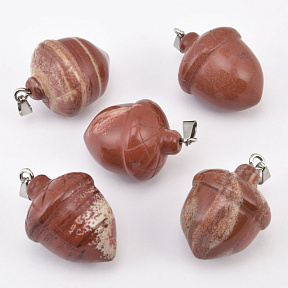 Підвіска Жолудь, Натур. камінь Яшма червона, 25х19 мм (POD-058593)
