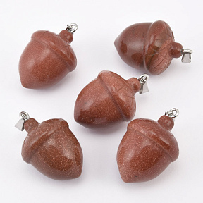 Підвіска Жолудь, Синт. камінь Авантюрин Золотий пісок, 25х19 мм (POD-058592)