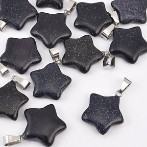 Підвіска Зірка, Синт. камінь Авантюрин Золотий пісок синій, 23х20 мм (POD-037485)