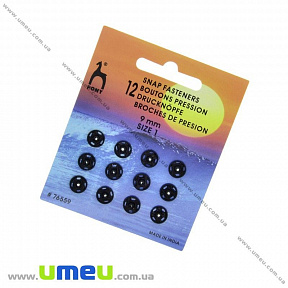 Кнопки пришивні металеві PONY, Чорні, 9 мм (SEW-030167)