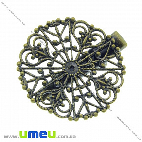 Основа мет. для шпильки крокодильчик (зажим) філігранна, 36 мм, Антична бронза (OSN-014587)