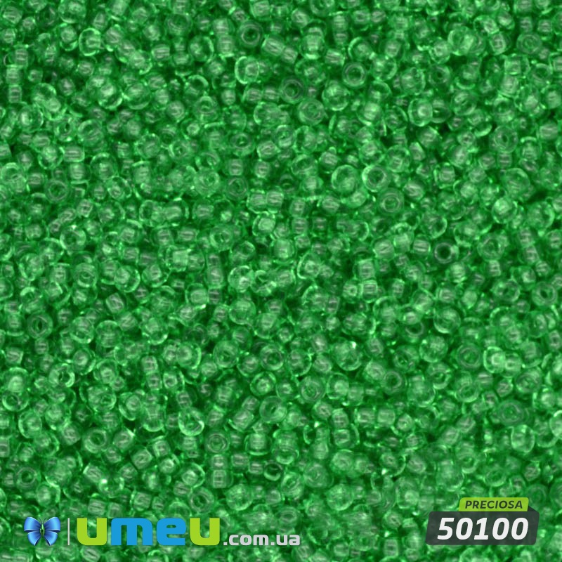 Бісер чеський 12/0, №50100, Зелений світлий, Прозорий (BIS-017022) / 1 уп (5 г)