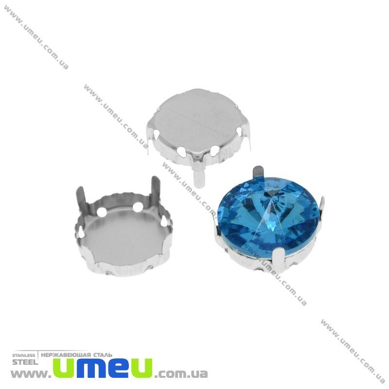Оправа-цапи з нержавіючої сталі під Ріволі Кругла, 14 мм, Темне срібло (STL-029952) / 1 шт