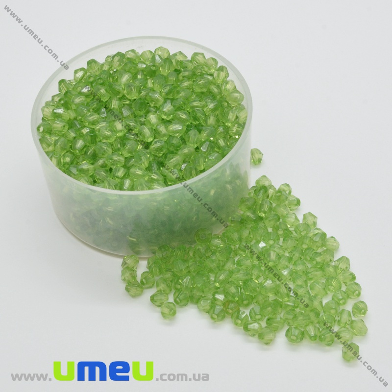 Намистина акрилова Біконус, 4х4 мм, Салатова (BUS-035047) / 1 уп (5 г)