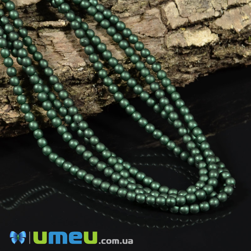 Намистини чеське скло Preciosa Перли 3 мм 70057M, Зелені матові (BUS-040252) / 1 уп (20 шт)