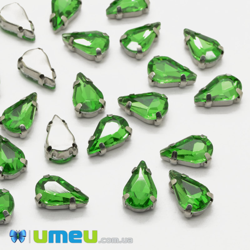 Шатон крапля 10х6 мм, Темне срібло, Зелений (KAB-040649) / 1 шт