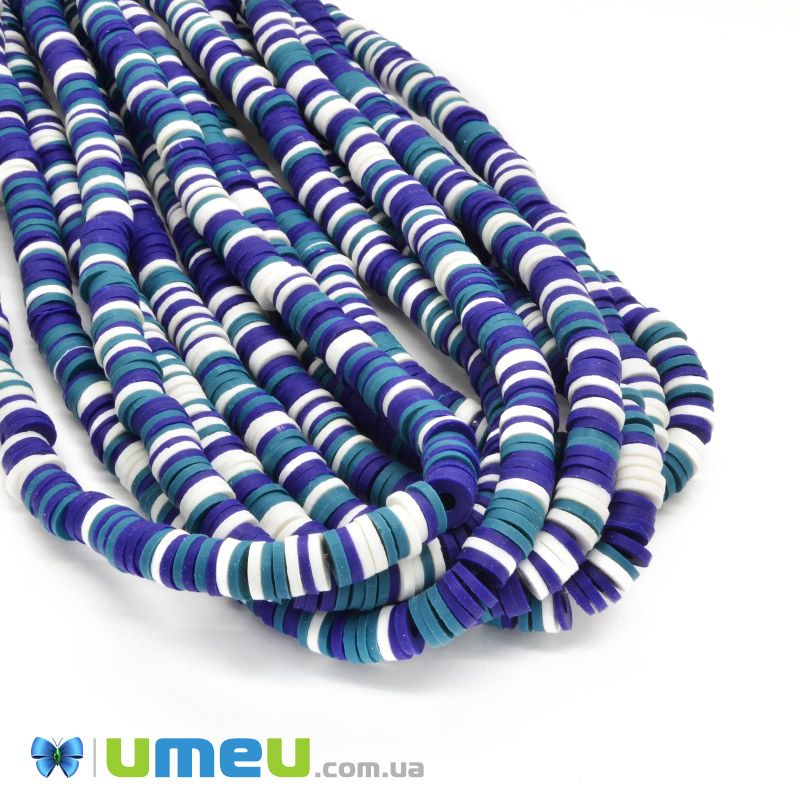 Намистини з полімерної глини, 6 мм, Мікс синій (BUS-044087) / 1 низка