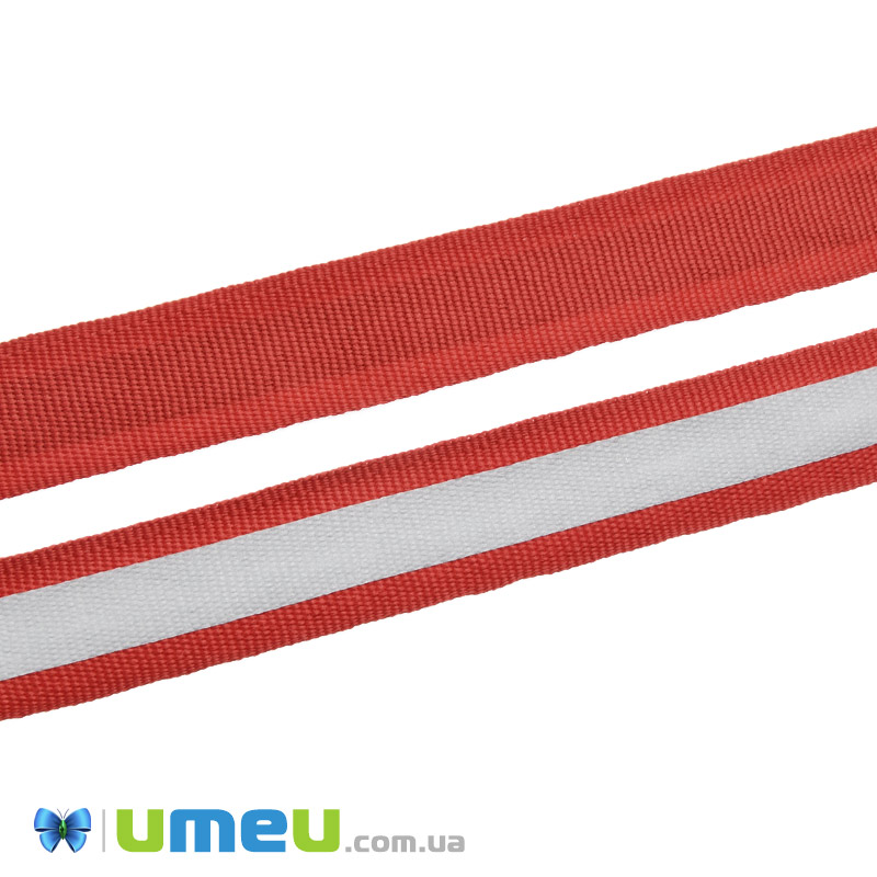 Тесьма світловідбиваюча на стрічці, 20 мм, Червона (LEN-047580) / 1 м