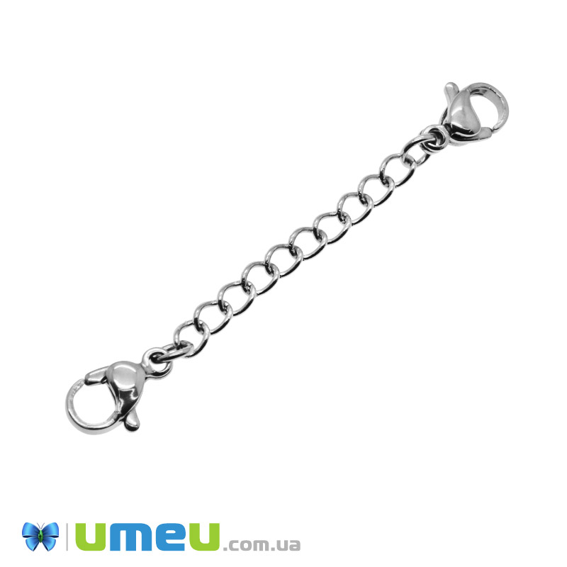 Ланцюг-подовжувач з нерж. сталі з карабінами, 5 см, Темне срібло, 4х3 мм (ZEP-049015) / 1 шт