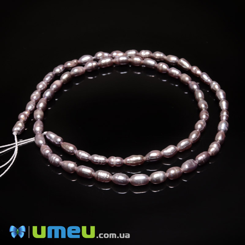 Намистини натуральні річкові Перли пудрові Рис, 5-6х3,5-4 мм (BUS-049685) / 1 низка