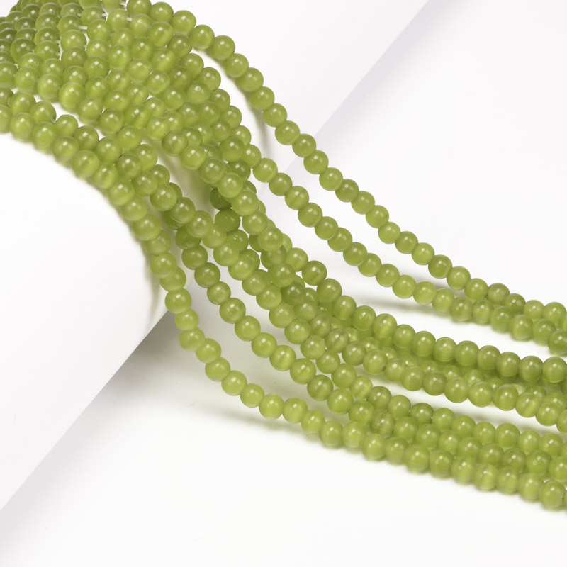 Намистини Котяче око, Синт. камінь, 4 мм, Оливкові, Круглі (BUS-054214) / 1 низка