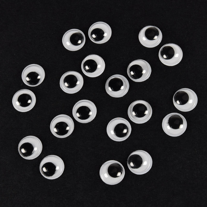 Очі клейові круглі з бігаючими зіницями, 10 мм, Білі (DIF-056617) / 1 уп (20 шт)