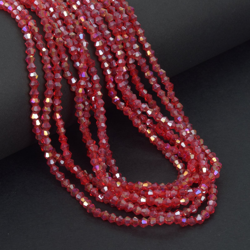 Намистини Біконус, 3х2,5 мм, Червоні АВ (BUS-057461) / 1 низка