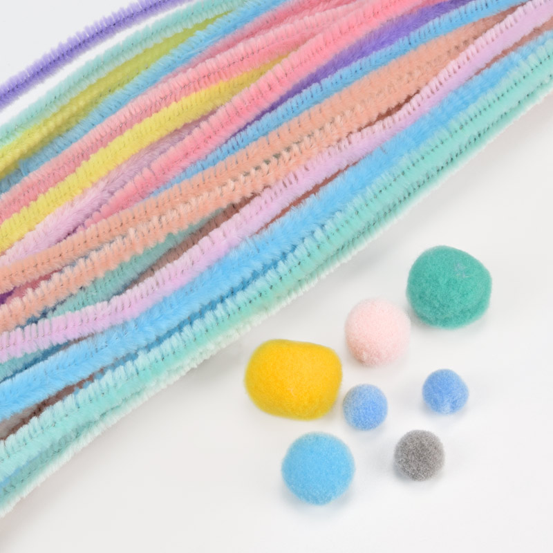 Набір синельного дроту з помпонами, Мікс, 30 см (DIF-060069) / 1 уп (50 шт)