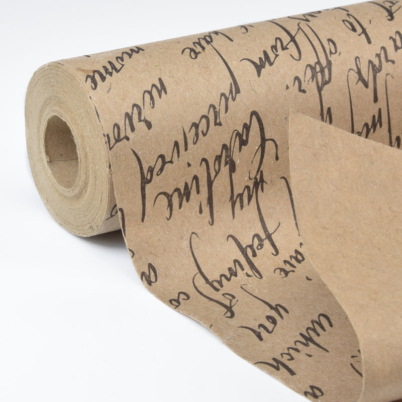 Пакувальний Крафт папір односторонній з написом, 50смх8м (UPK-060252) / 1 рулон
