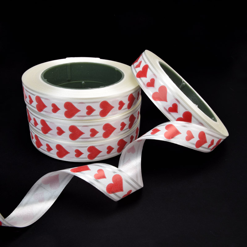 Стрічка поліпропіленова, Серця, 20 мм, Біла (LEN-060445) / 1 моток (50 м)