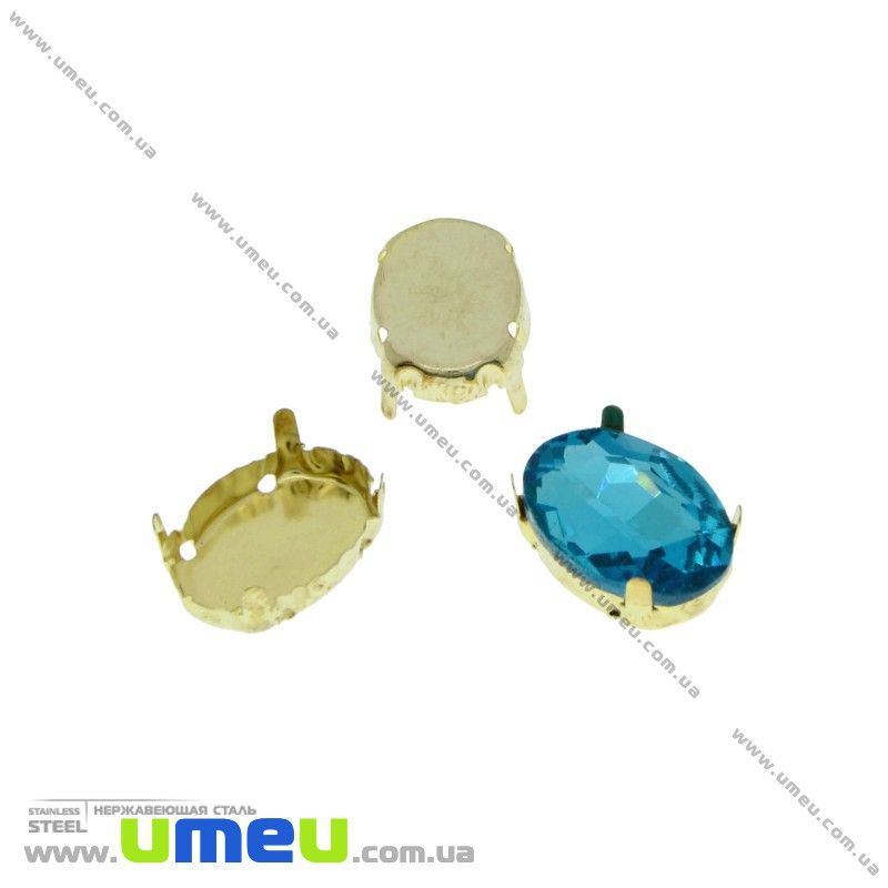 Оправа-цапы из нержавеющей стали под риволи Овальная, 14х10 мм, Золото (STL-029942) / 1 шт