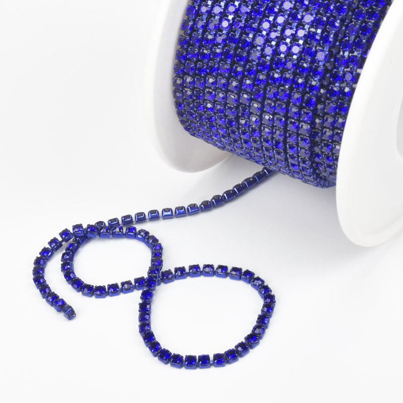 Стразовая цепь SS6 - 2,0 мм, Синяя, Стразы стеклянные синие (ZEP-040478) / 1 м