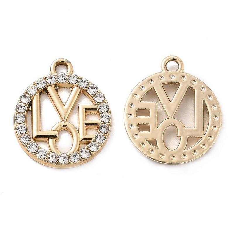 Подвеска метал. LOVE со стразами, 19х16 мм, Светлое золото (POD-053485) / 1 шт